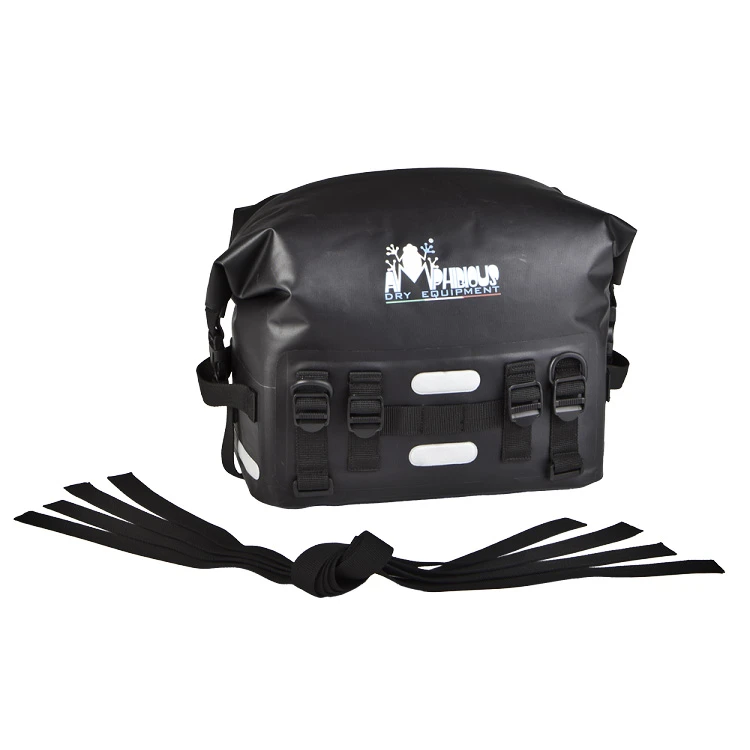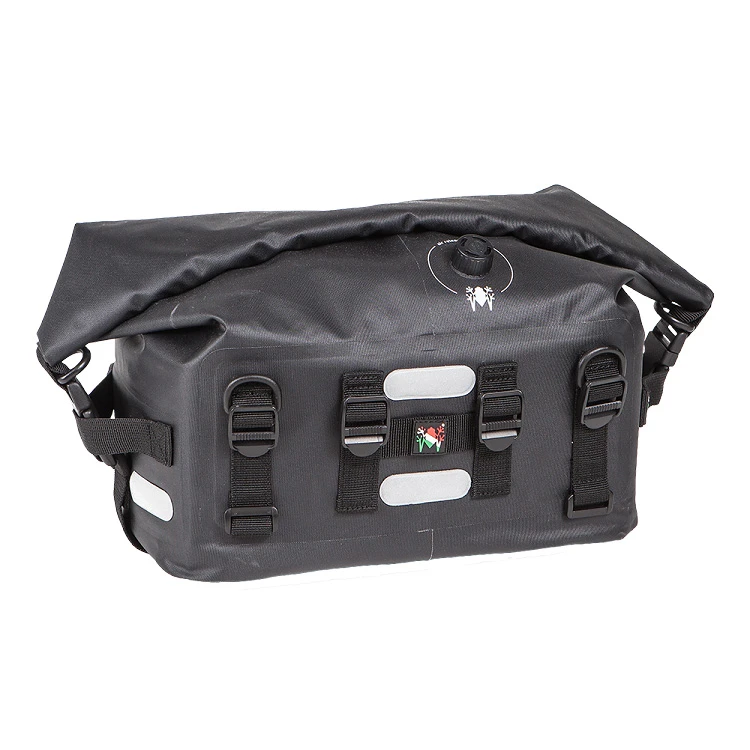 Amphibious Upbags are a great space saving addition to your luggage needs. Just when you thought more room was hard to come by, Upbags are here to solve that problem. These bags share the same design characteristics as the Amphibious Motobag and can be used as you see fit. However, the most common use is to strap these down on top of already installed side luggage. This saves you from taking up the space across the top of the bike where a passenger would sit.These bags are sold individually so it would be ideal to purchase two for one bike. The size ranges from 9 to 19 liters in capacity thanks to the air valve that allows a slim fit so no air is trapped inside. Bags are reinforced on the bottom to ensure ruggedness and have 8 reflective strips for visibility from each angle. A carrying handle made of Cordura fabric makes for easy transportation when off the bike.Approximate Upbag Dimensions (LxWxH):5.5″-11.8″ x 12.6″ x 7.9″.