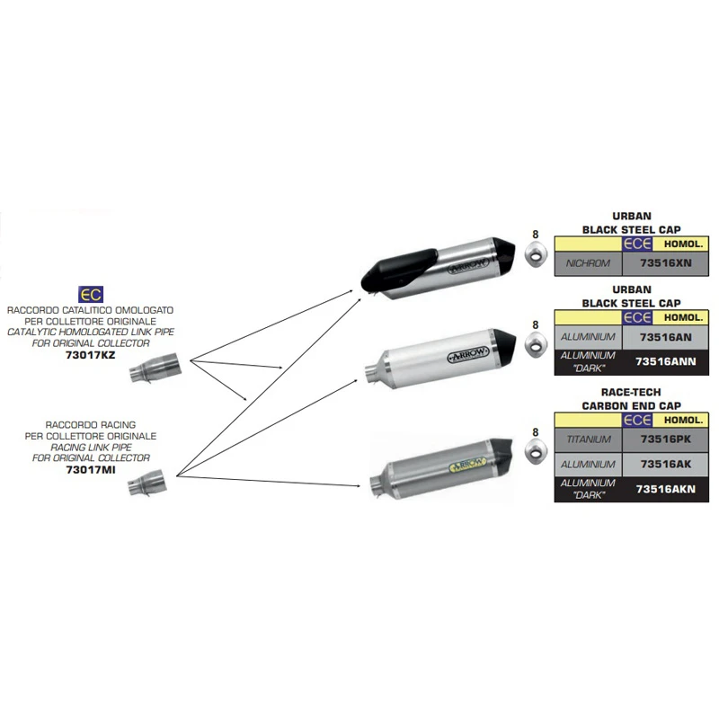 Arrow’s 73516AKN Race-Tech Aluminum Dark Exhaust with Carbon End Cap is made specifically for Kymco Xciting 400i (2018-current).