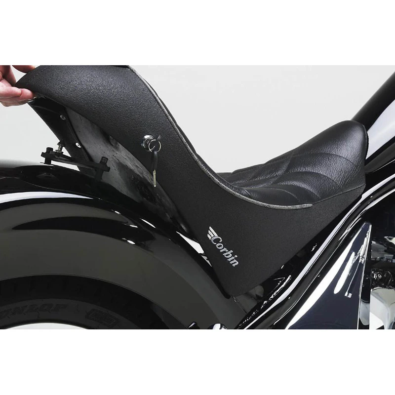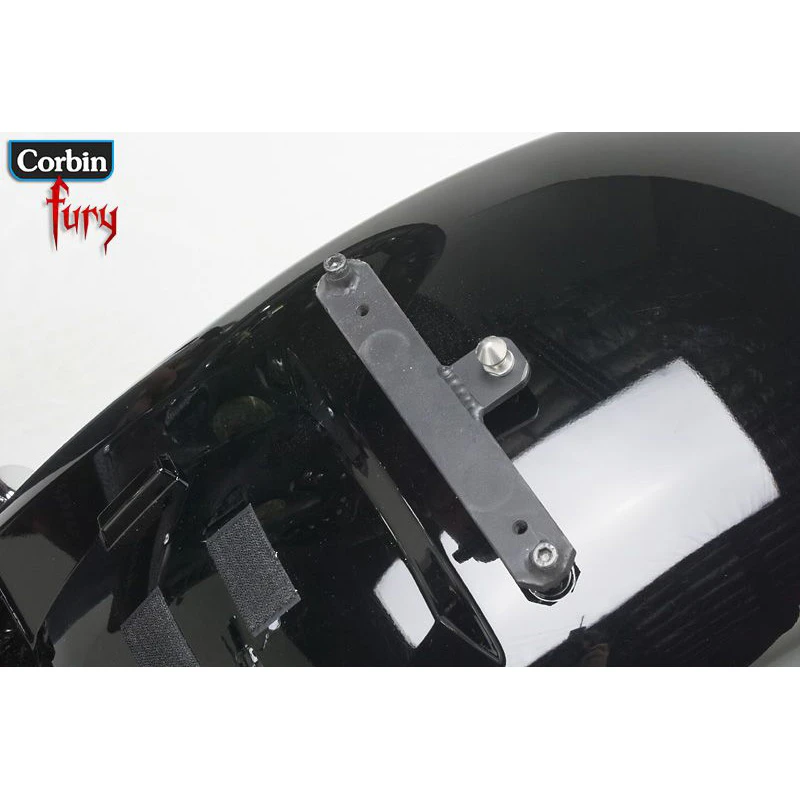 - Once this bracket (included) is installed on the fender, the Corbin solo saddle will latch to the stainless steel pin and release easily with a key lock integrated into the side of the saddle.