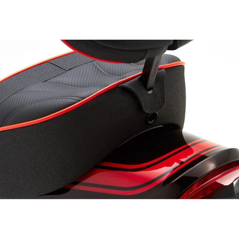 - backrest adjusts to provide a tailored fit to rider posture.