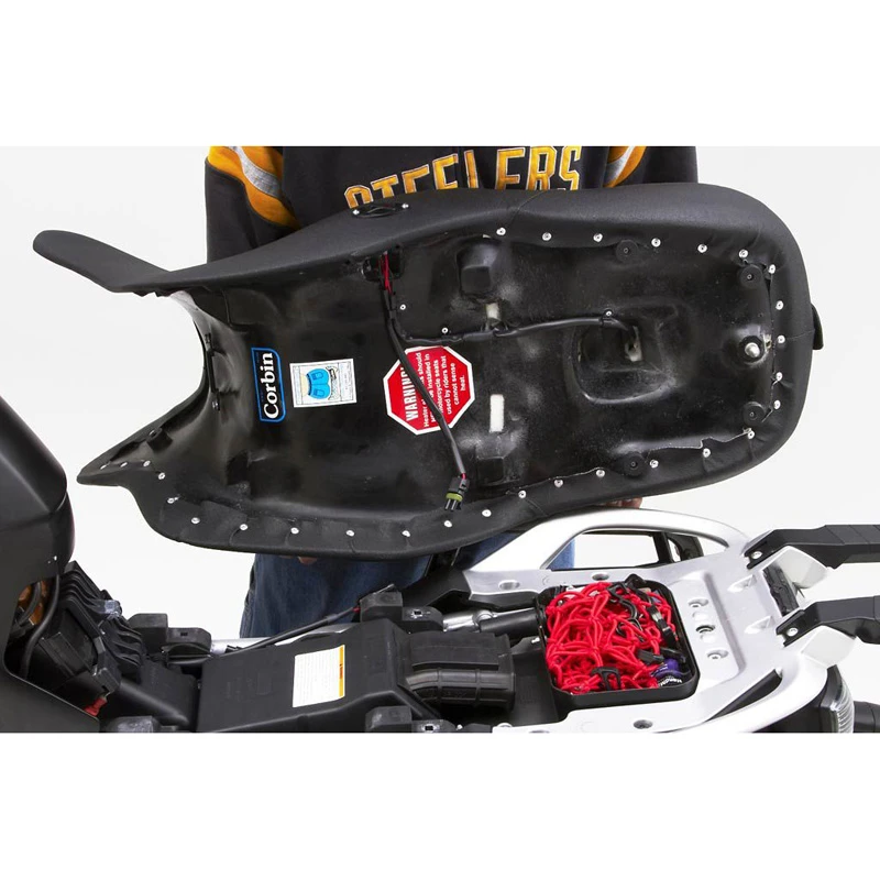 - Corbin backrest gives nine inches of vertical support for your copilot. Adjusts to riding posture.