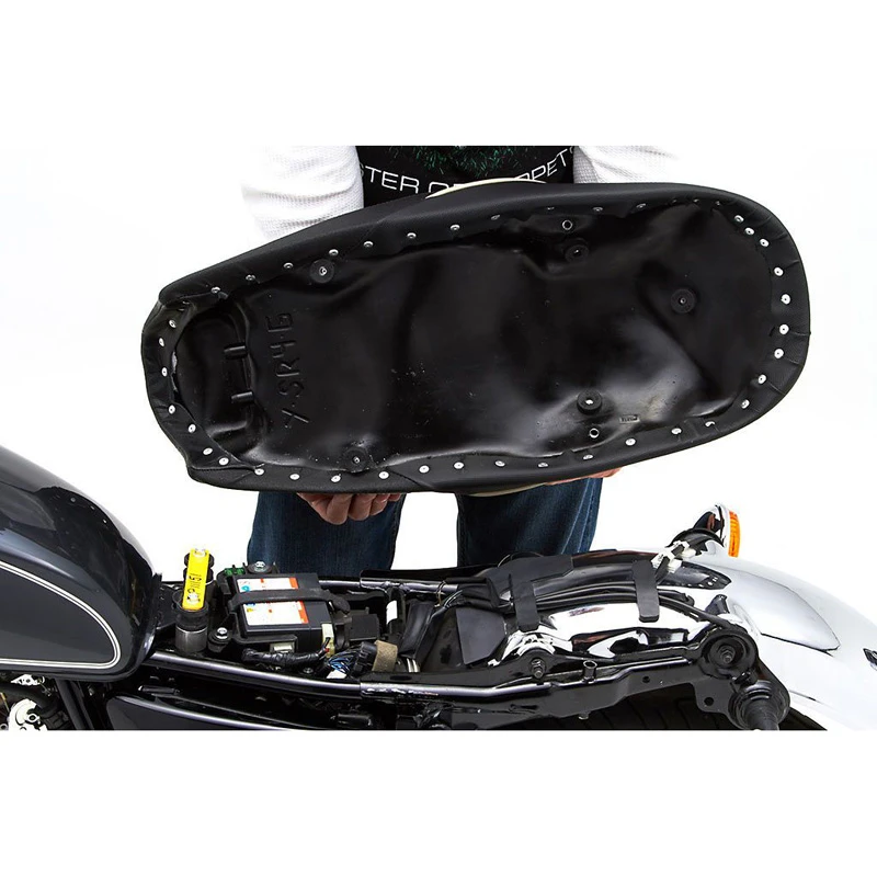 - Corbin saddle installs similar to the stock seat with tabs in the front and stock bolts through the chassis and into the saddle at the rear. Gunfighter does not use the plastic cowl from the OEM seat.