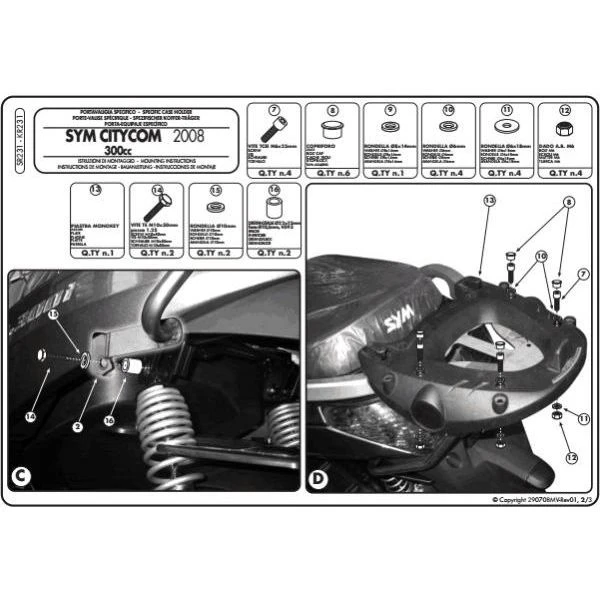This Givi SR231M Rear Carrier is designed to accept a Givi Monokey Top Case on to the Sym Citycom 300, 2008 models and onwards.