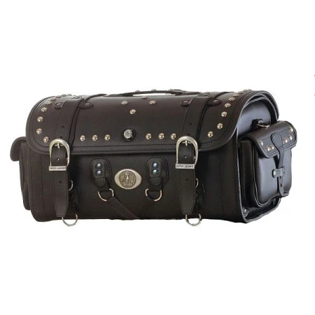 Genuine leather top bag with chrome plated brass rivets for your bike. All bags are made of 3 to 4 mm thick fully tanned cowhide. There are molded and reinforced parts that offer overall support in the corners and along the edges. The main benefit of all the support provided is so that the bag can maintain its shape even after experiencing the elements. This bag was made in mind of outlasting motorcycles that you dream of. Features resistant seams, ergonomic carrying handles, robust strap fasteners, and lock with keys to access. Comes in two sizes being the Buffalo Custom Handbag 35 liter and Buffalo Custom Smallbag 25 liter. The leather and finish is of the highest quality available.