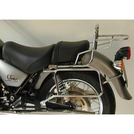 Hepco & Becker’s 650.527 01 02 Rear Rack is made specifically for Moto Guzzi Stone. This rack allows you to attach any hard side case offered by Hepco & Becker. Every Side Carrier is custom designed for each individual model bike. These racks are made of high quality steel tubing finished in black, silver or chrome. All racks are relatively easy to install and come with the required hardware and installation instructions.