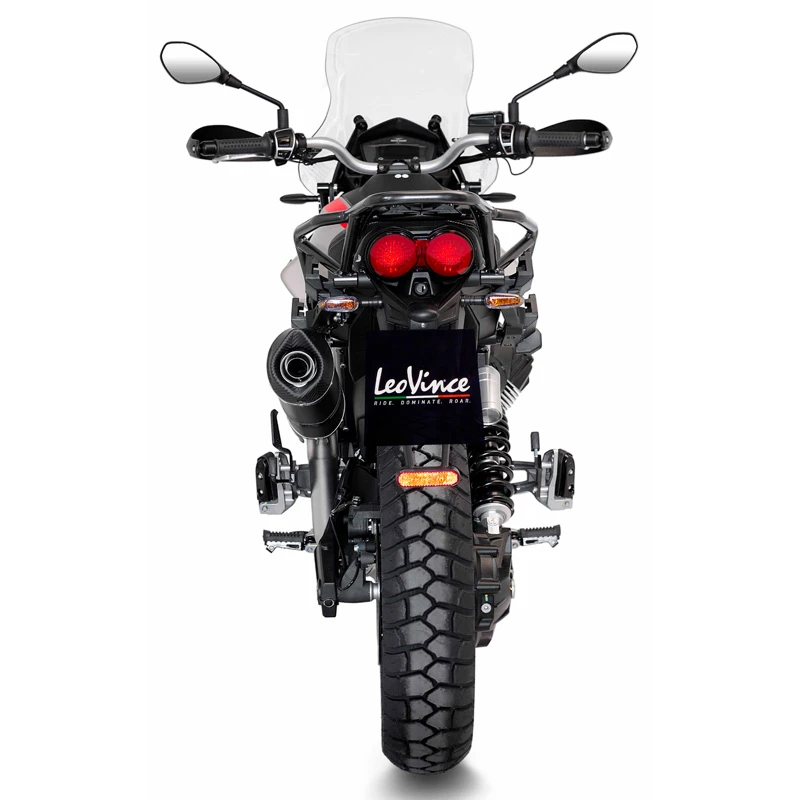 LeoVince’s 14348EB LV One Evo Slip-on System Exhaust, Black is made specifically for Moto Guzzi V85 TT / Adventure (2019-current).
