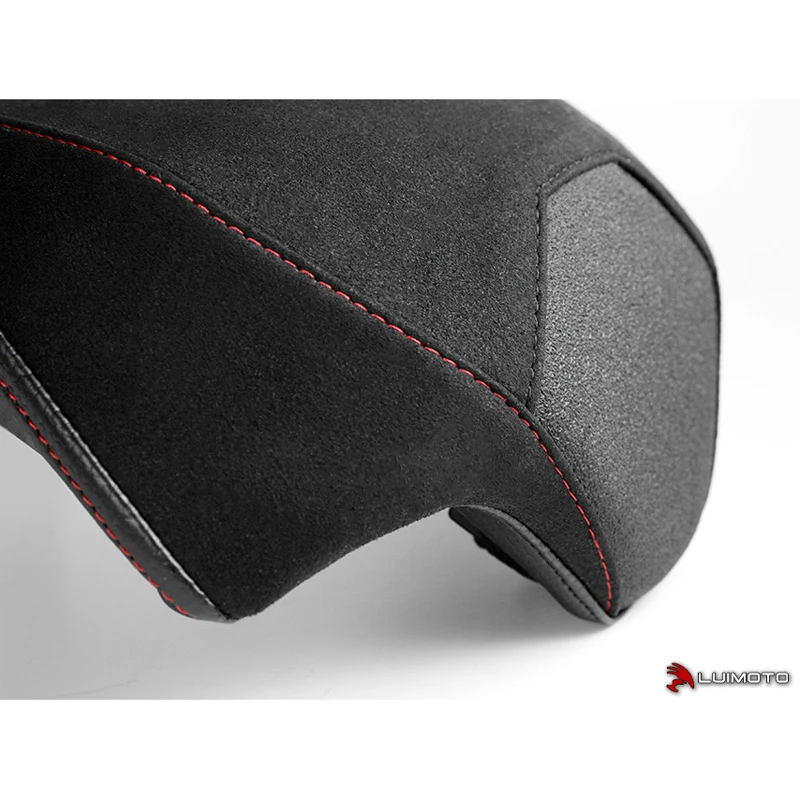 Luimoto’s 1452201 Corsa Passenger Seat Cover, Black with Red Stich is made specifically for Ducati Panigale V4 (2018-)
