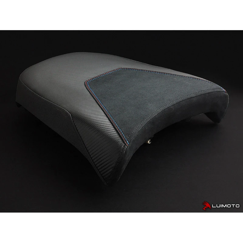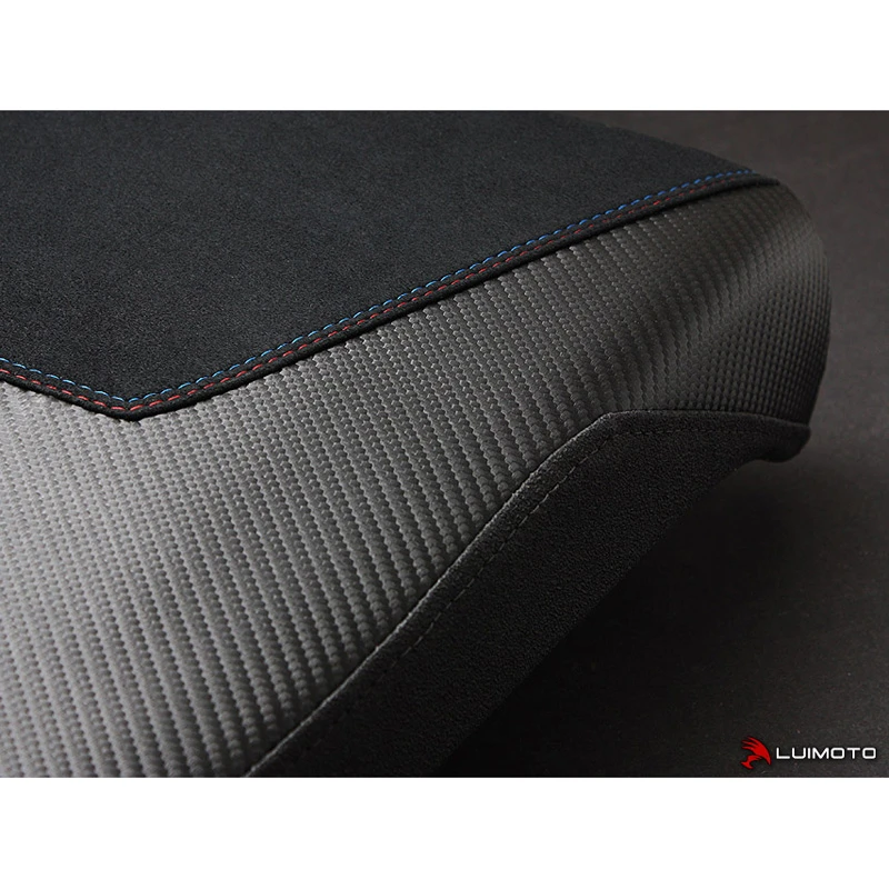 The R1200GS Adventure Motorsports seat cover features carbon fiber and perforated-look vinyl along with a luxurious synthetic suede riding surface to complete the look of your motorcycle. Stand out with the finishing touch of Luimoto.