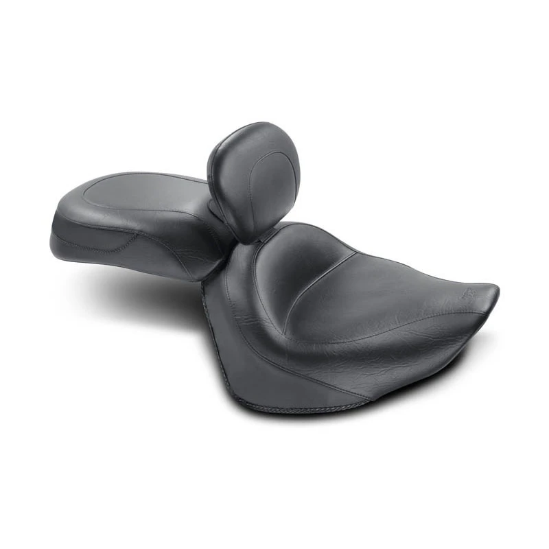 Sold as a complete three-piece set including solo, removable driver backrest, and matching passenger seat. The built-in driver backrest offers more features than any other backrest on the market. The 16.5″ wide driver bucket sits you at the ideal cruising angle and is one of several design improvements over the stock seat. The entire 11″ width of the comfortable passenger seat is fully supported by Mustang’s unique internal steel support wings–no sagging on the edges, no more passenger complaints.