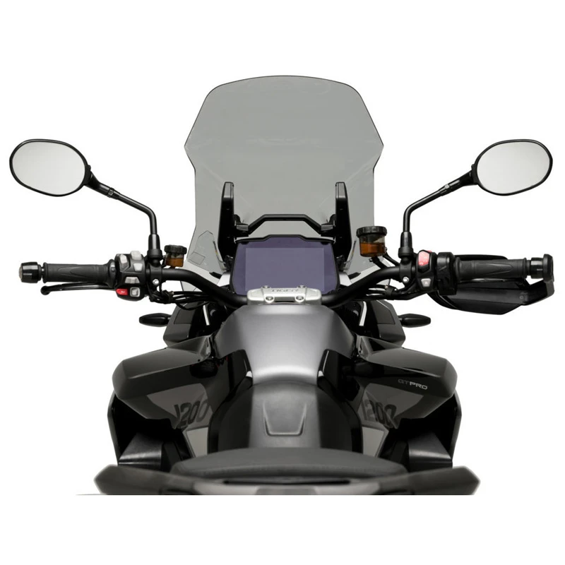 Touring screens, developed by Puig in Barcelona, are designed with the objective to aerodynamically protect the rider without affecting his/her field vision. In addition, these screens fit perfectly with the adventure style and aesthetics of the trail models thanks to their wide range of colors and different sizes.
