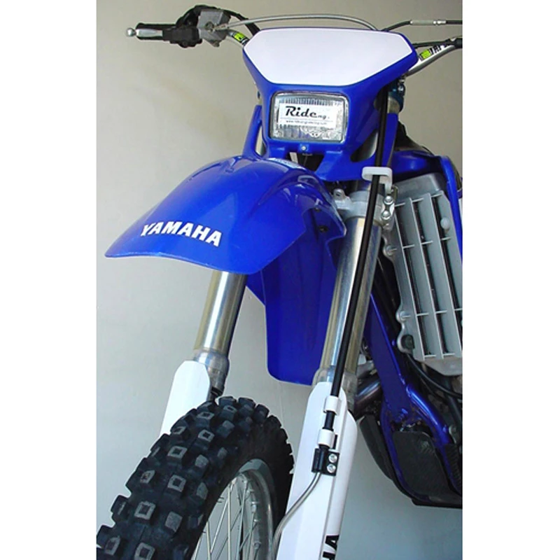 Ride Engineering’s WR line routes as good as stock around the headlight, and then directly to the caliper. Its made from extremely flexible Dupont Teflon steel, that improves stopping power and reduces fade. Expansion is close to zero under all riding conditions. Requires Brake line clamp for installation.
