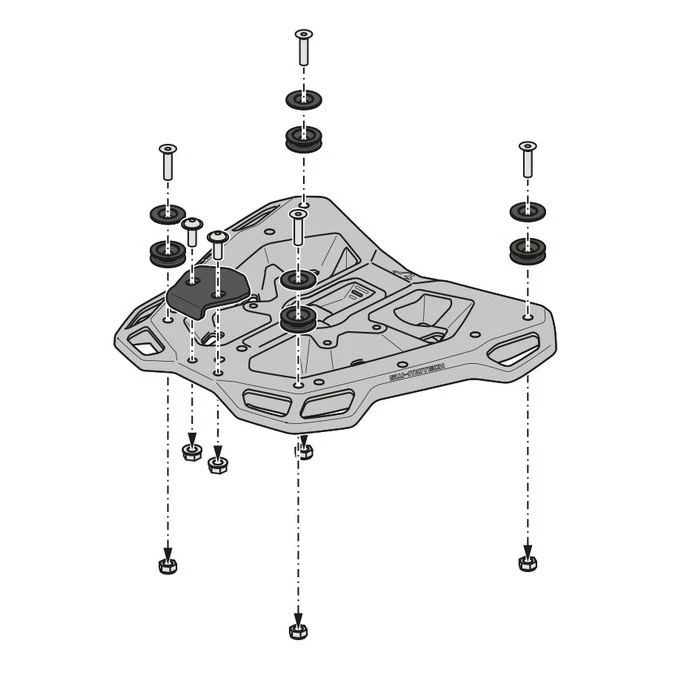 - The adapter plate latch buckle is equipped with a safety mechanism that guarantees TRAX top cases, Sysbag 15/30 with adapter plate and PRO or EVO tank bags are securely in place