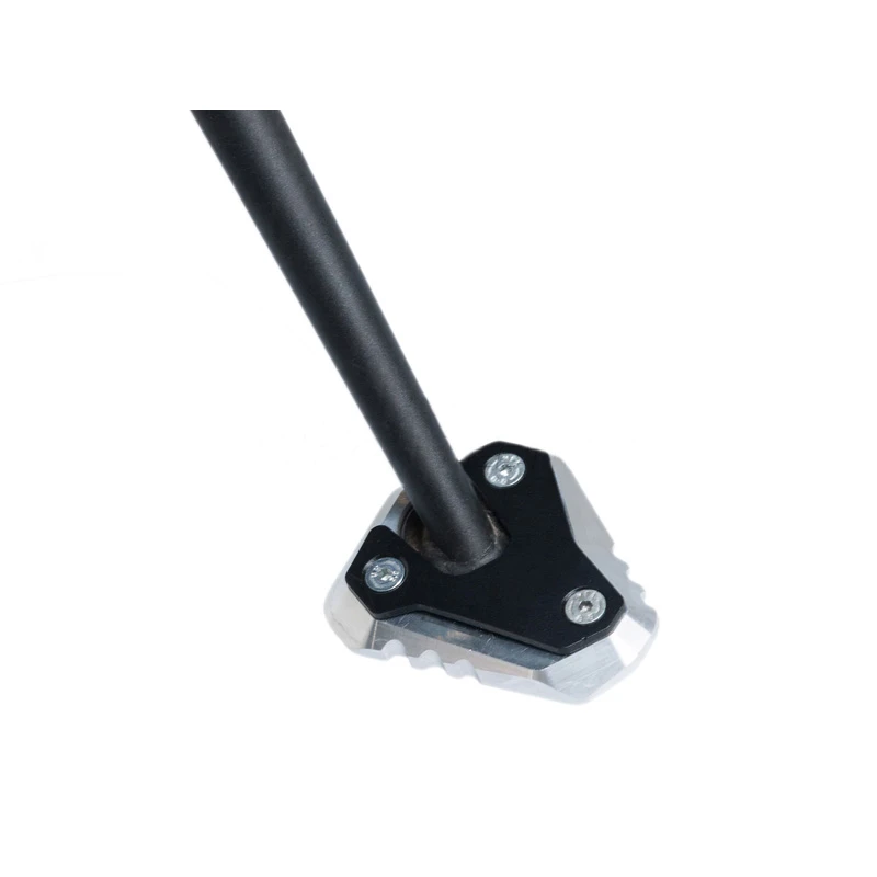 Sw-Motech Sidestand Foot Enlarger increases the amount of contact to help prevent sinking in soft ground.